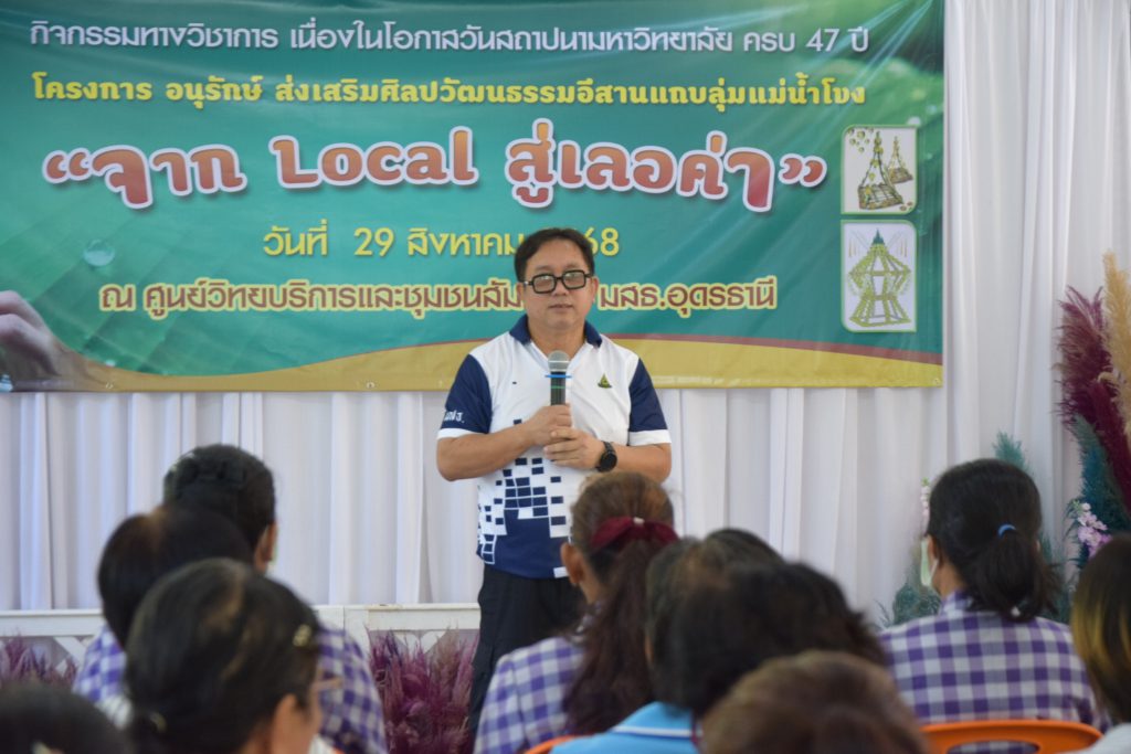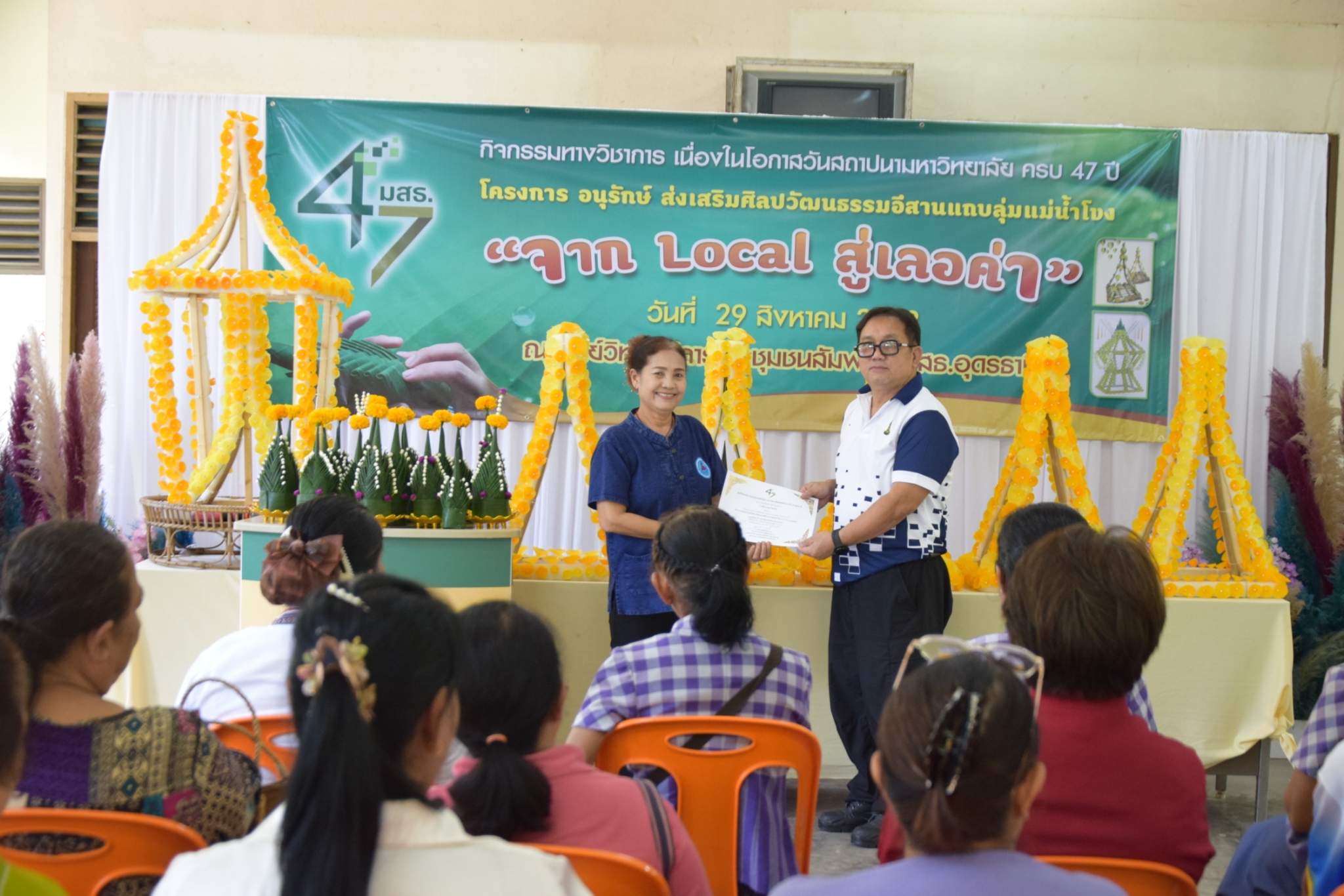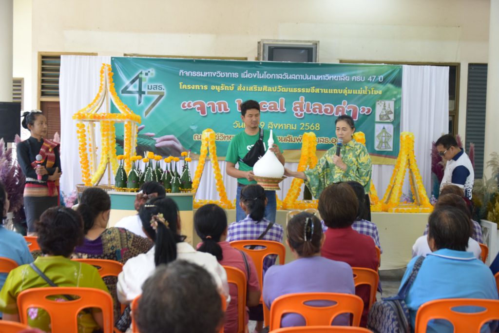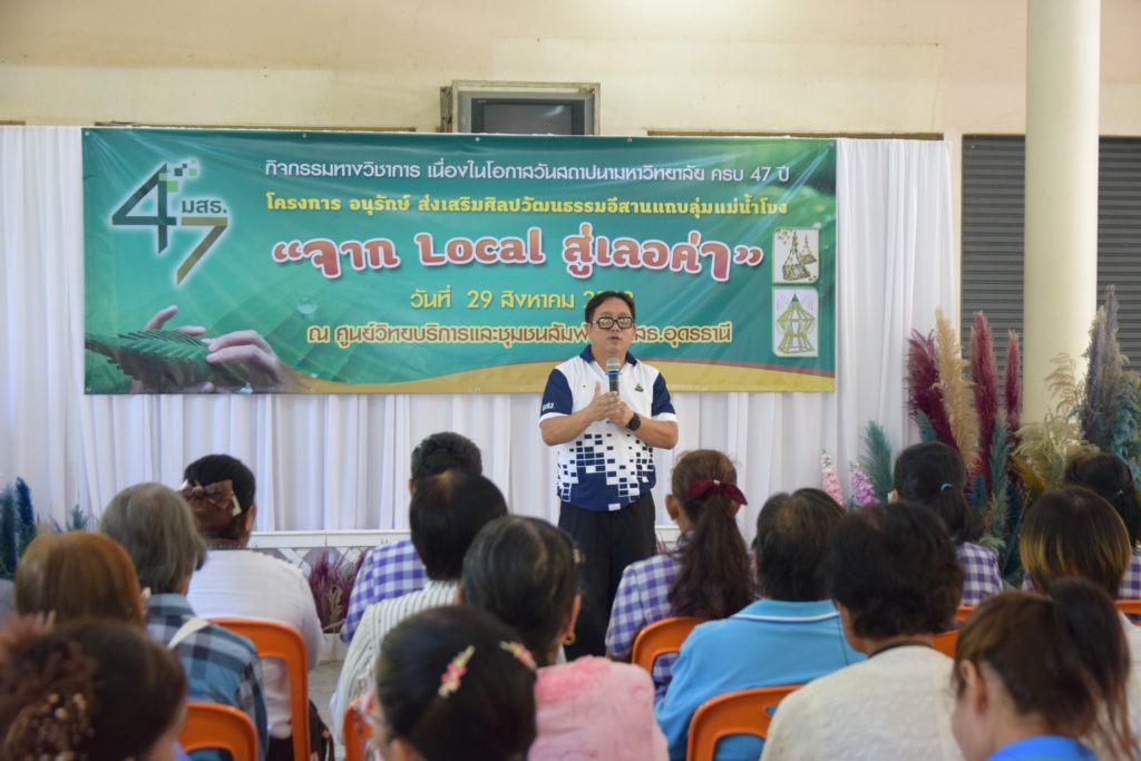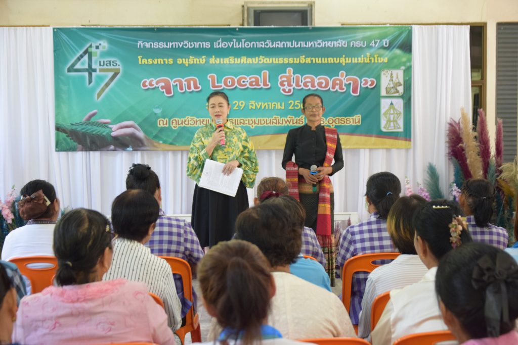 ชื่อโครงการ อนุรักษ์ ส่งเสริมศิลปวัฒนธรรมอีสานแถบลุ่มแม่น้ำโขง “จากLocal สู่เลอค่า” นายนันทวุฒิ อินทร์งาม รักษาการในตำแหน่งผู้อำนวยการ ประธานเปิดโครงการ