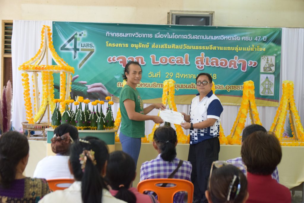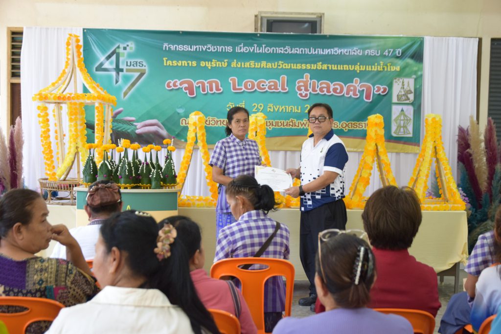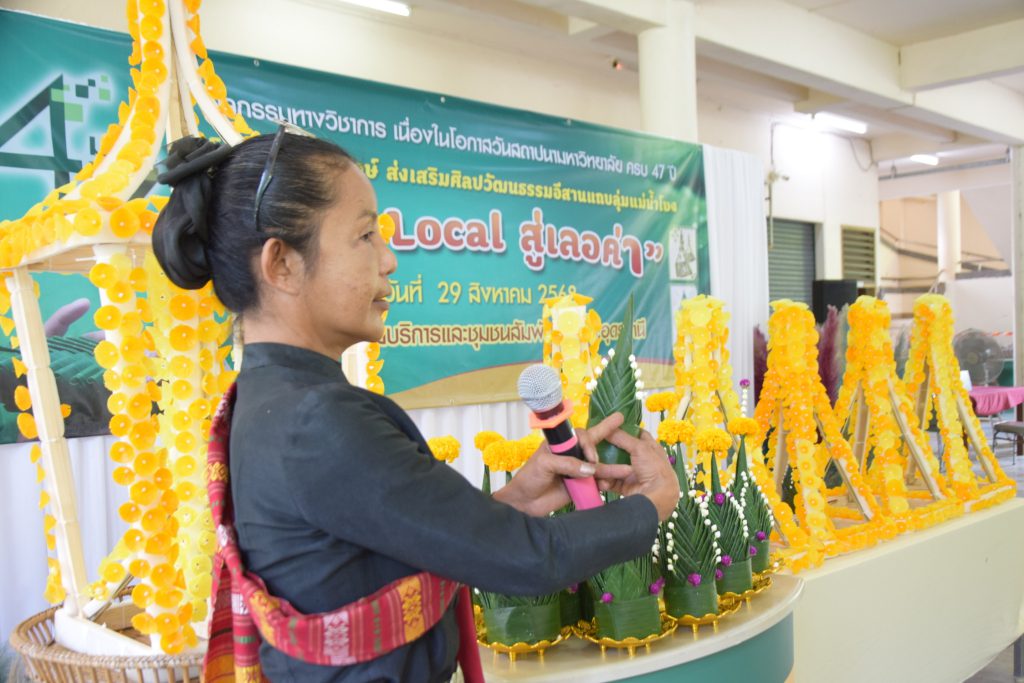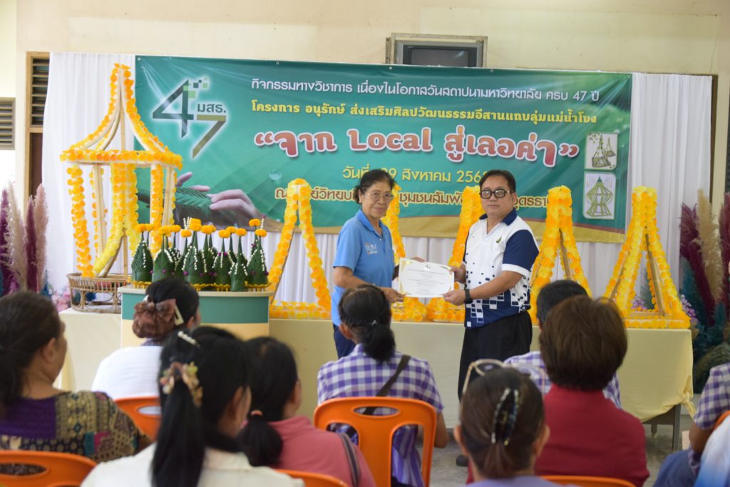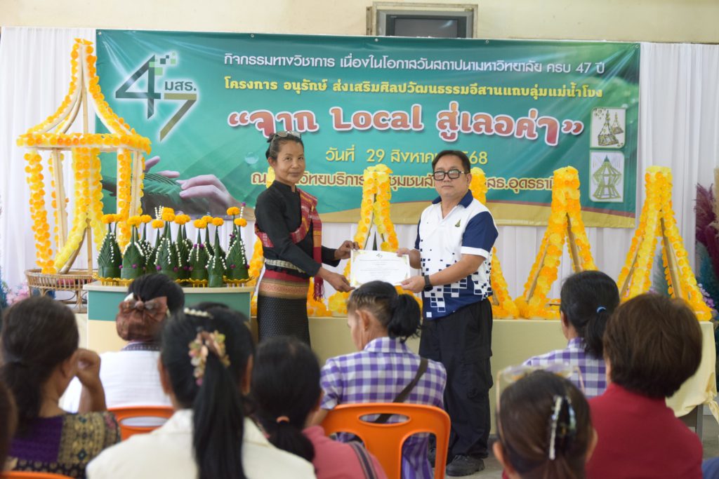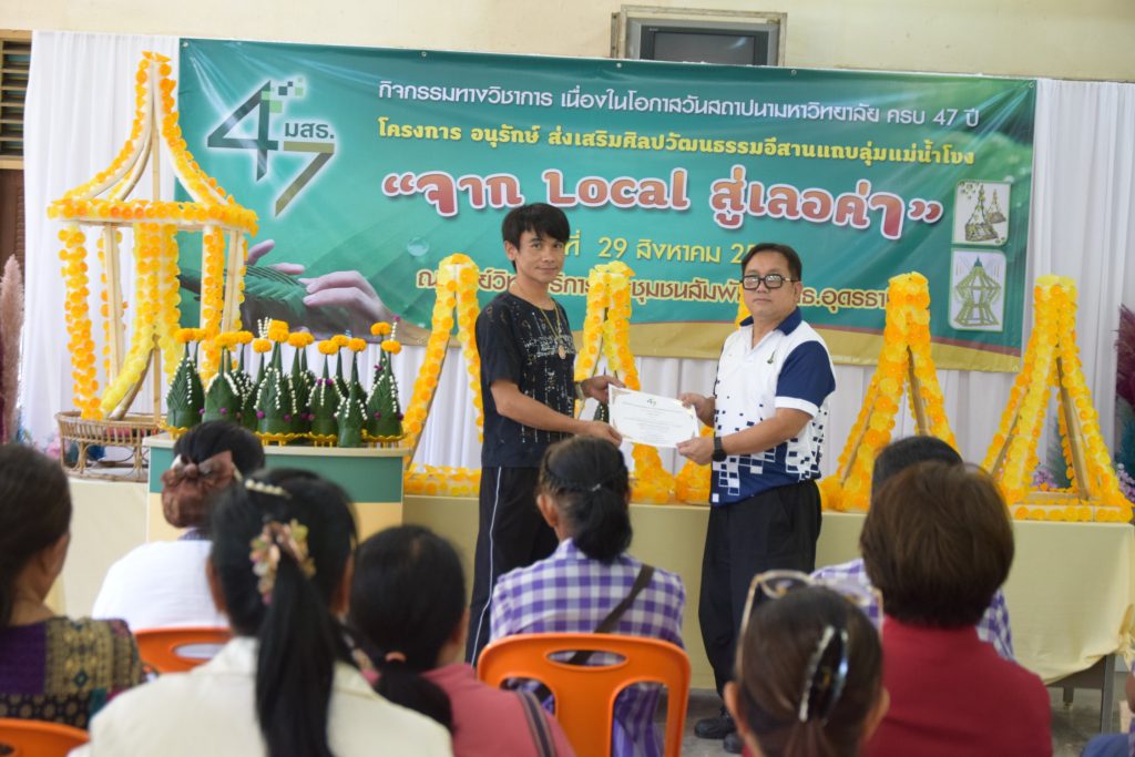 ชื่อโครงการ อนุรักษ์ ส่งเสริมศิลปวัฒนธรรมอีสานแถบลุ่มแม่น้ำโขง “จากLocal สู่เลอค่า” นายนันทวุฒิ อินทร์งาม รักษาการในตำแหน่งผู้อำนวยการ ประธานเปิดโครงการ